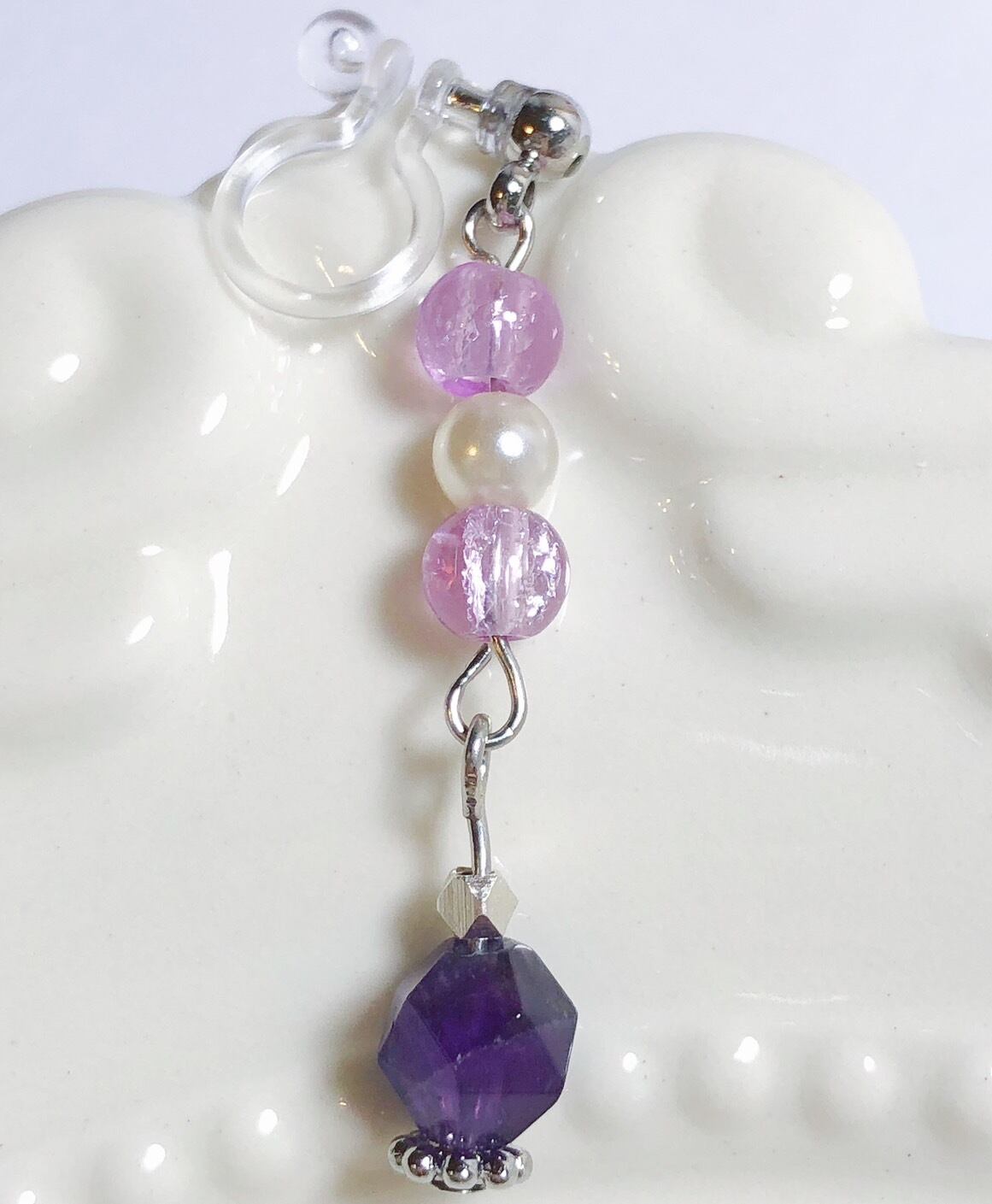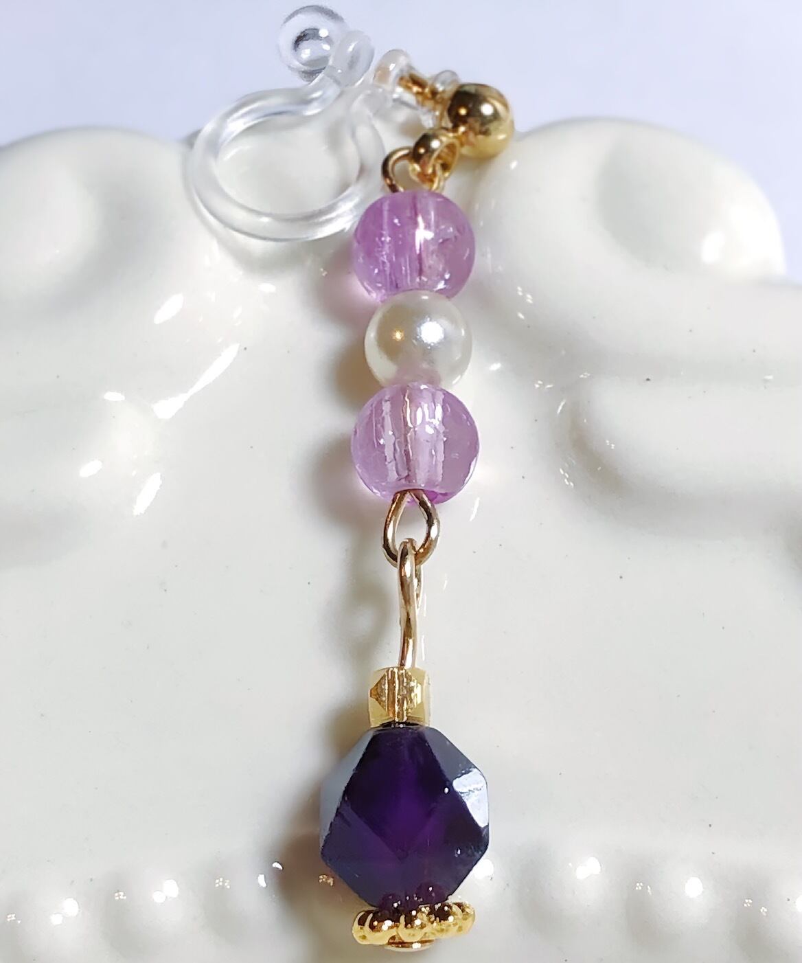 アメジストとガラスビーズノンホールピアス ✨【1個】